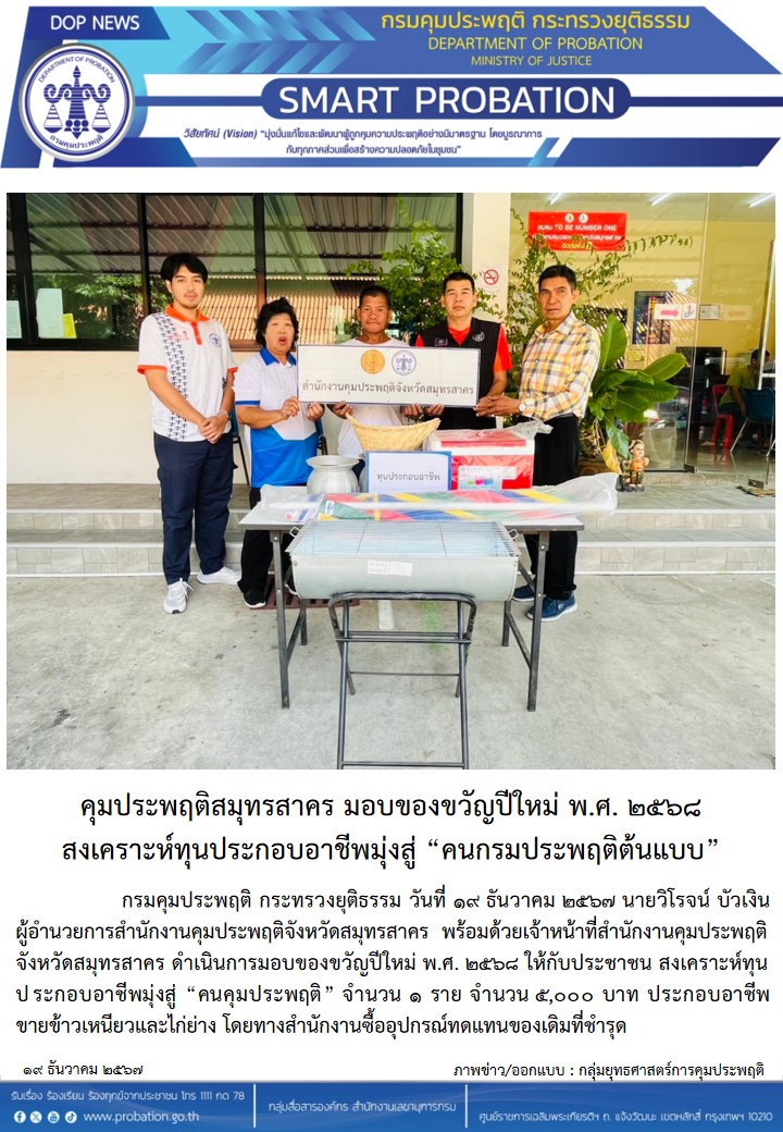 คุมประพฤติสมุทรสาคร มอบของขวัญปีใหม่ พ.ศ. 2568 สงเคราะห์ทุนประกอบอาชีพมุ่งสู่ “คนกรมประพฤติต้นแบบ”