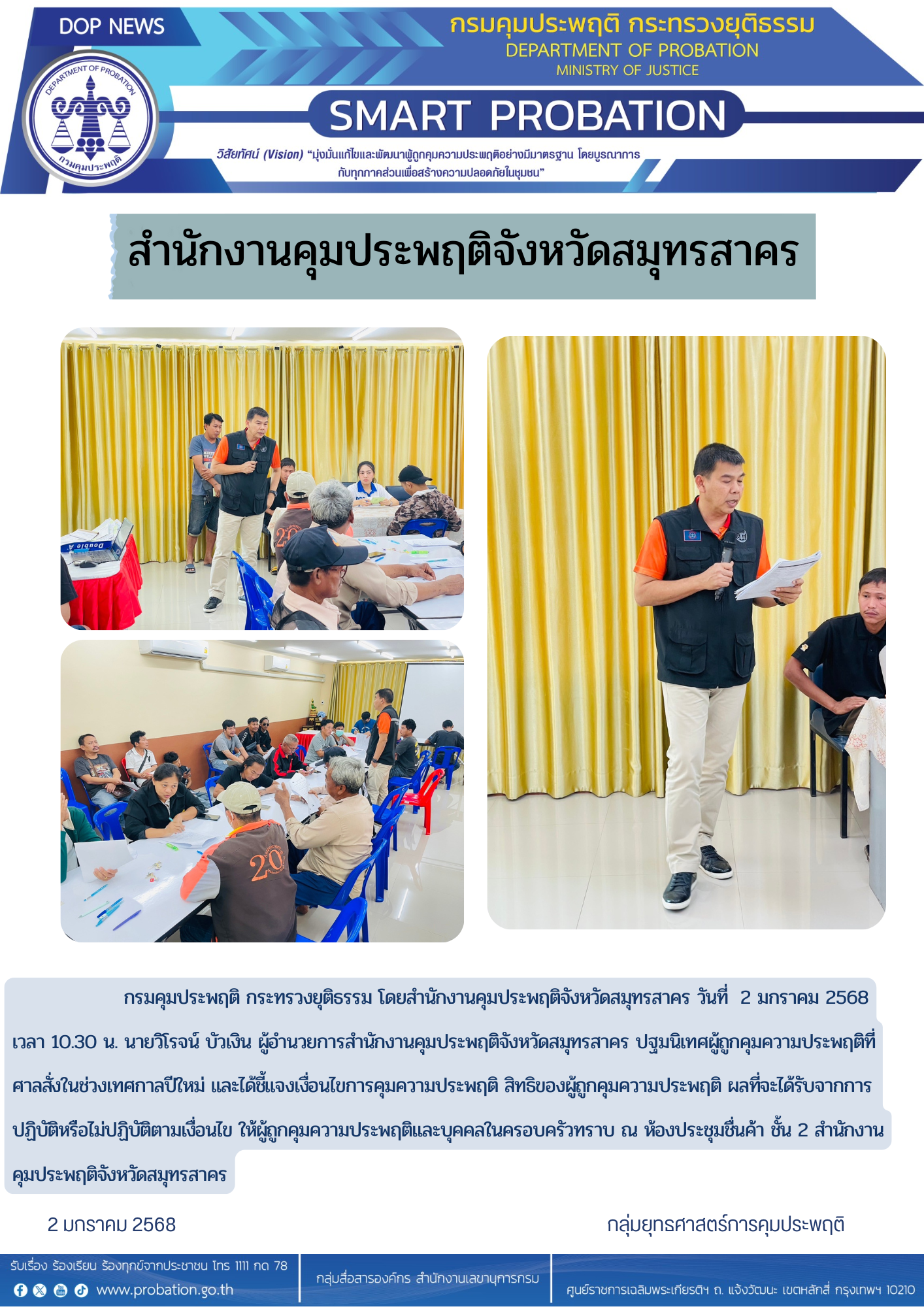 สำนักงานคุมประพฤติจังหวัดสมุทรสาคร ปฐมนิเทศผู้ถูกคุมความประพฤติที่ศาลสั่งในช่วงเทศกาลปีใหม่