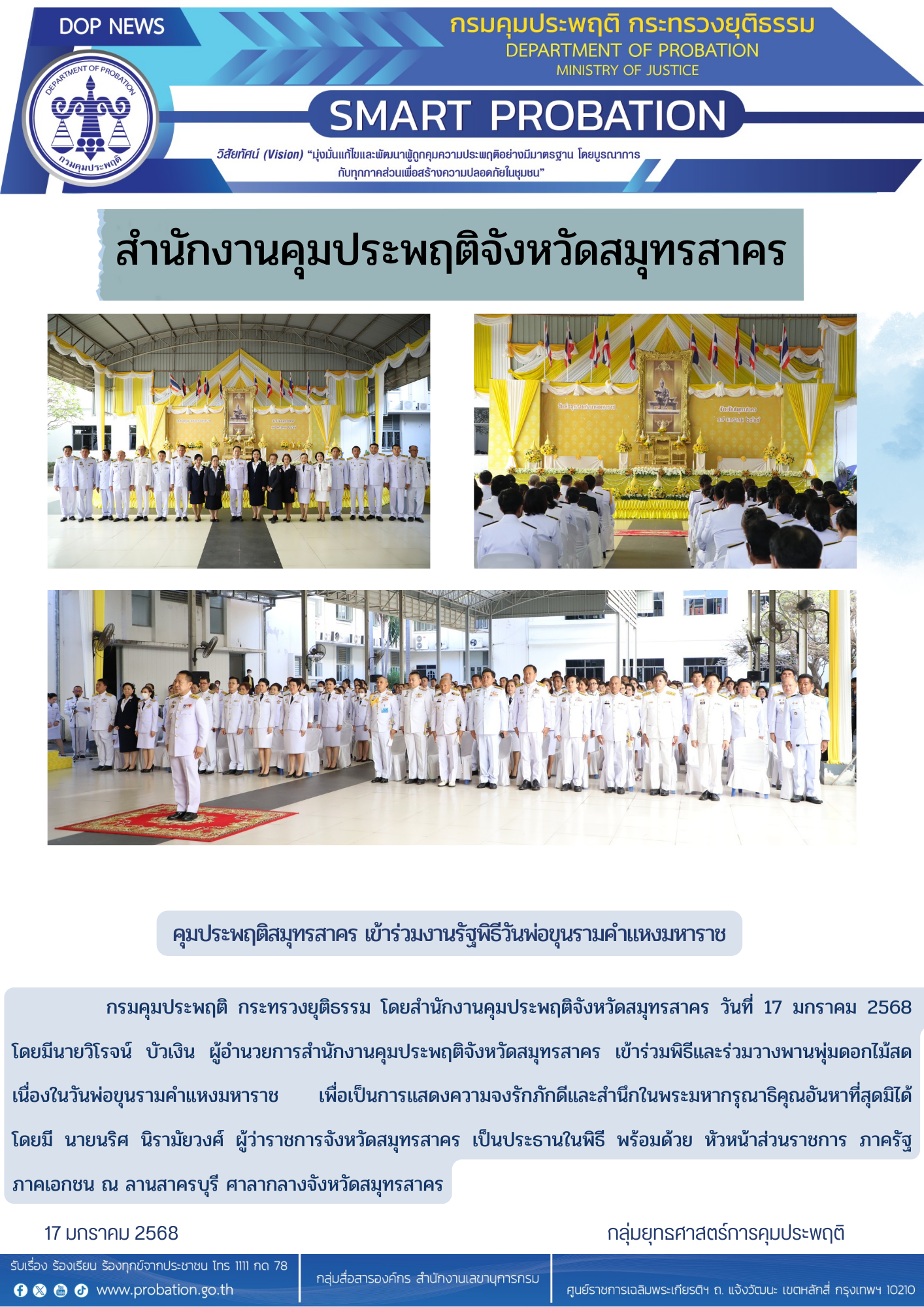 คุมประพฤติสมุทรสาคร เข้าร่วมงานรัฐพิธีวันพ่อขุนรามคำแหงมหาราช